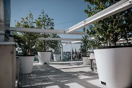 70 огромных деревьев, которые растут из крупногабаритных, весящих тонны горшков, фантастический вид на Вену и всё это – без принуждения к потреблению. Прямо возле Венского Западного вокзала с августа 2021 ждёт посетителей одно из самых необыкновенных мест для встреч на крыше в Вене. Шведский мебельный магазин Ikea возвёл в центре города свой инновационный филиал (так называемый «hus») с озеленённым фасадом, включающий в себя, в том числе, отель JO&JOE. Однако, пожалуй, самой популярной стала крыша-терраса мебельного магазина. Вход на неё – свободный, при этом посетители не обязаны ничего покупать. Хотя будет жаль, если они не воспользуются гастрономическим предложением: ведь на крыше-террасе гостей ждут напитки, коктейли и уличная еда от JOE&JOE.